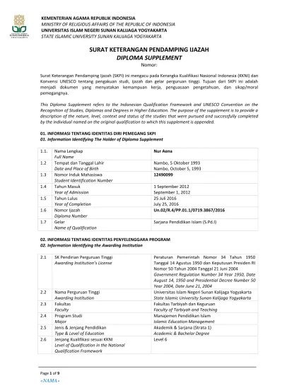 Surat keterangan pendamping ijazah diploma supplement tempat dan tanggal lahir date and place of birth program studi bahasa pengantar kuliah lama studi .